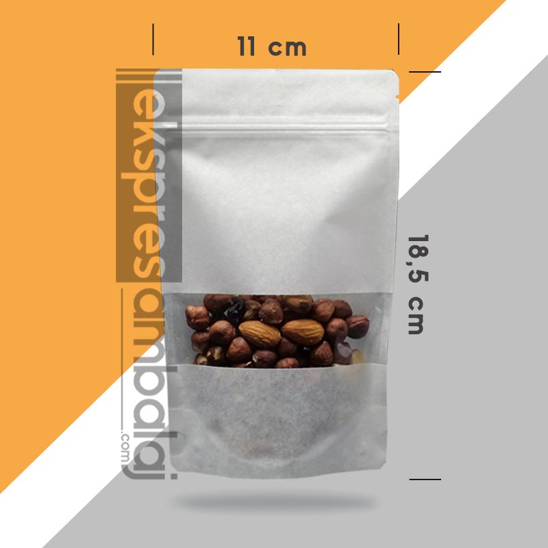 Beyaz Kraft Pencereli Kilitli Doypack 11×18,5